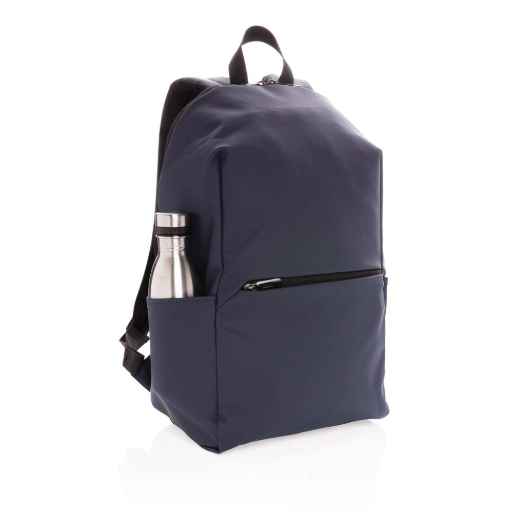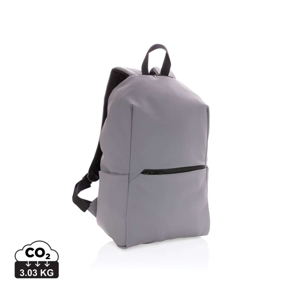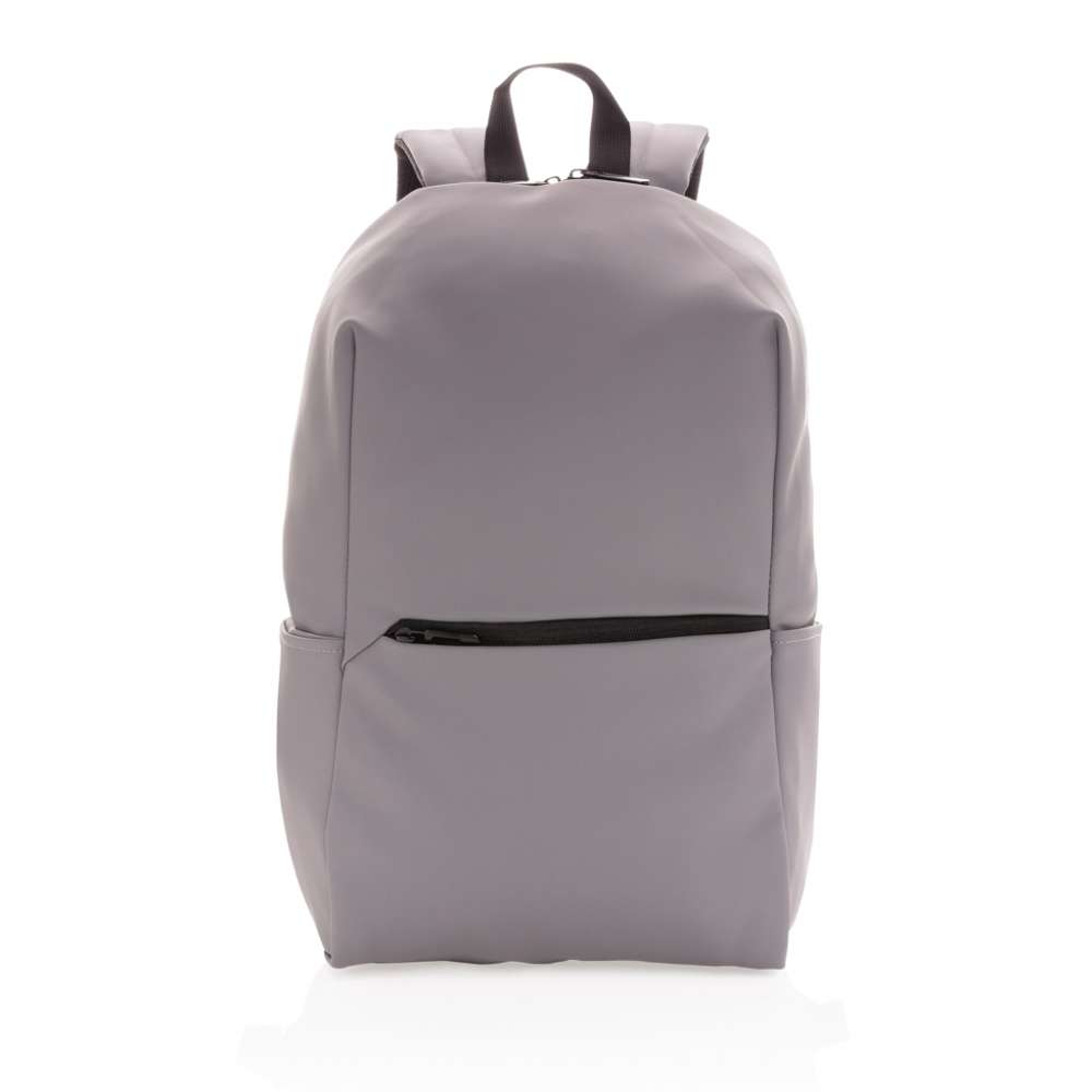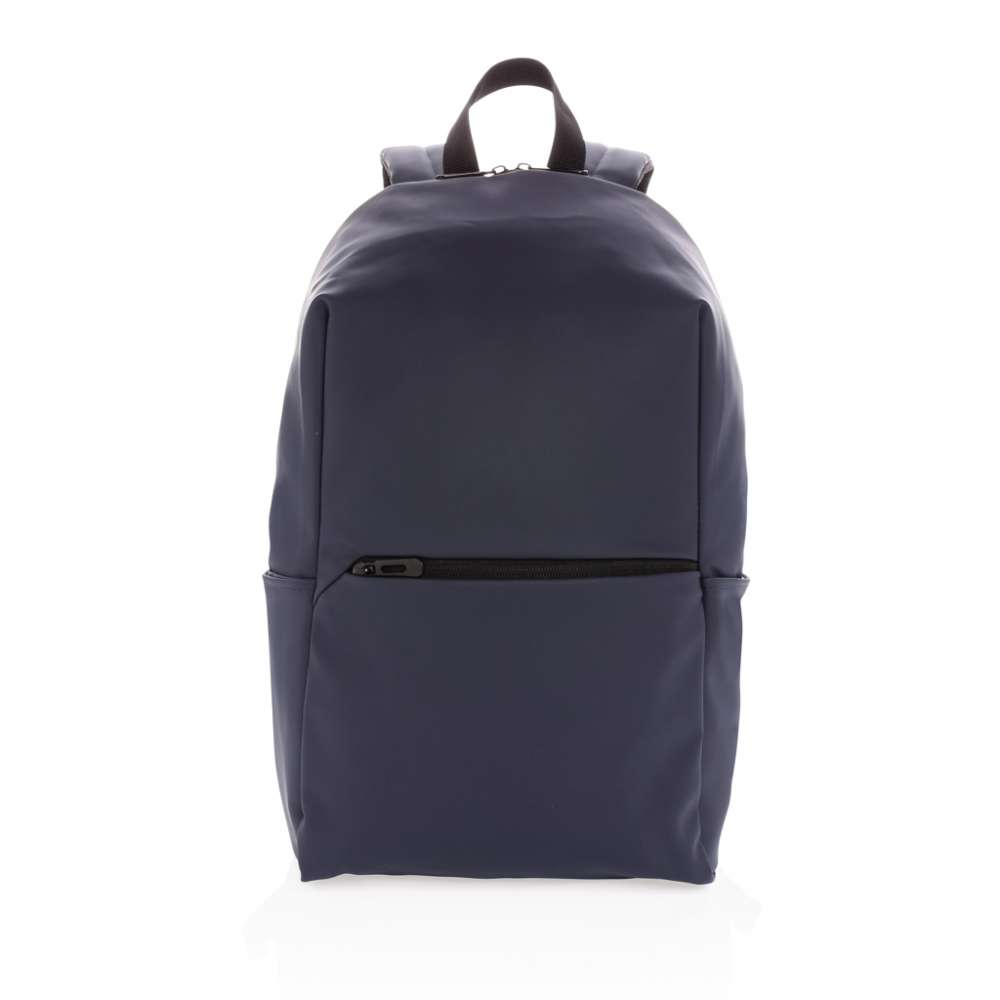Minimalistisk, modern ryggsäck i PU. Laptopfack med plats för 15.6′ laptop, ett rymligt huvudfack, 2 innerfack och 2 pennöglor. Mesh-vadderad baksida, justerbara axelremmar. Utsida 100% PU. Insida 100% 210D polyester. PVC-fri.