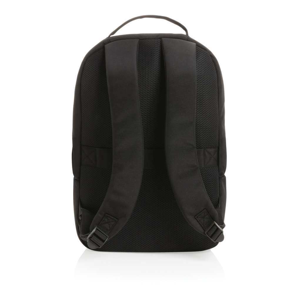 Organisera dina tillhörigheter och din laptop i denna stiliga Swiss Peak laptopryggsäck. Ryggsäcken har ett 15.6′ vadderat laptopfack, flera mindre fack och en baggagerem. Med AWARE™ spårämne som bevisar användandet av återvunna material. 2% av intäkterna för varje såld Impact-produkt kommer att doneras till Water.org. PVC-fri.