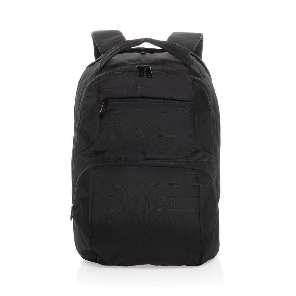 Universal AWARE™ laptopryggsäck i 1200D polyester har en klassisk design med två huvudfack. Vadderat laptopfack med plats för 15.6′ laptop och blixtlåsförsett frontfack. Med AWARE™ spårämne som validerar användandet av genuint återvunna material. 2% av intäkterna för varje såld Impact-produkt kommer att doneras till Water.org. PVC-fri.