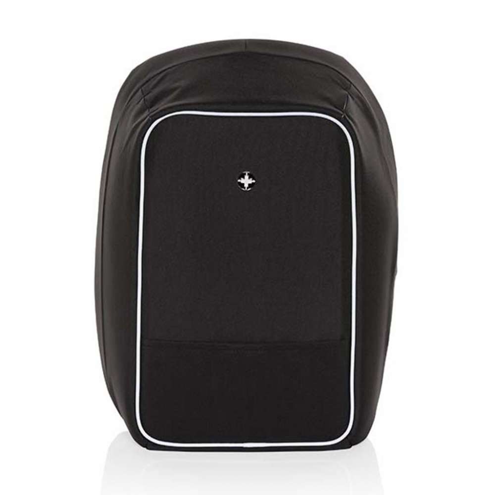 Med Swiss Peak anti-ficktjuv 15.6′ laptopryggsäck pendlar du med stil. De dolda dragkedjorna och dolda facken skyddar dina tillhörigheter. Anslut enkelt din powerbank till den integrerade USB laddningsporten och ladda din mobil eller surfplatta i farten. Reflekterande remsa ökar din synlighet i mörkret. Med bagage-rem. Med AWARE™ spårämne som validerar användandet av genuint återvunna material. 2% av intäkterna för varje såld Aware™-produkt kommer att doneras till Water.org. PVC-fri. Registrerad design®