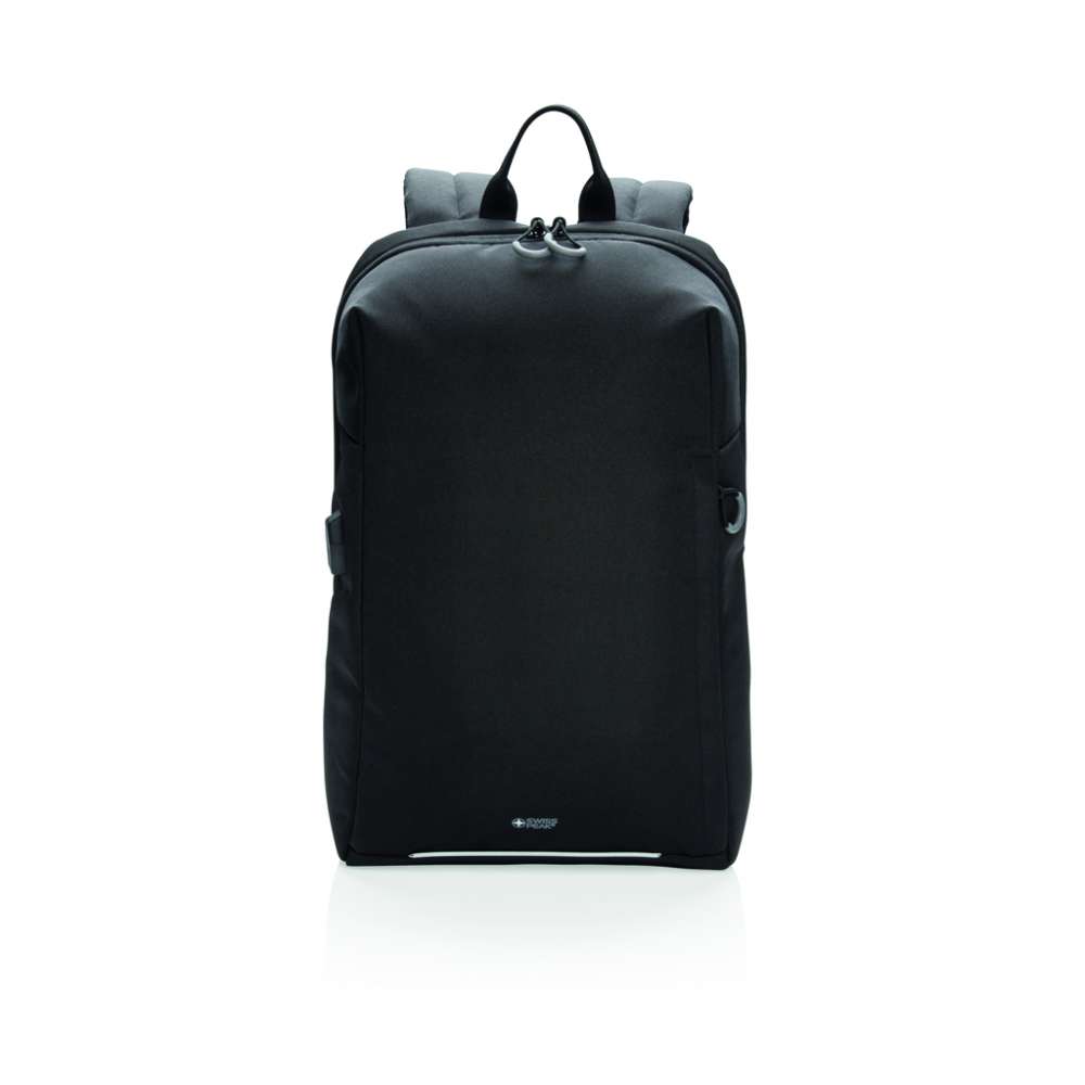 Stilig laptopryggsäck som är väl lämpad som handbagage. Vadderat laptopfack med plats för 15,6′ laptop. Trolley-rem och USB A output. RFID-skyddat fack på sidan med enkel åtkomst (NFC (13.56 MHz) Blocking). Reflekterande remsa på framsidan. Med AWARE™ spårämne som validerar användandet av genuint återvunna material. 2% av intäkterna för varje såld Aware™-produkt kommer att doneras till Water.org. PVC-fri.