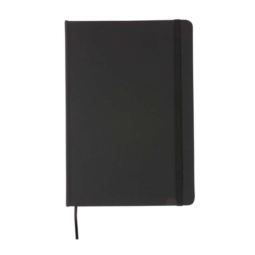Linjerad inbunden A5-anteckningsbok med pärm i PU med elastisk stängning och svart siddelare. 144 sidor på 70g/m2. Cremefärgade sidor.