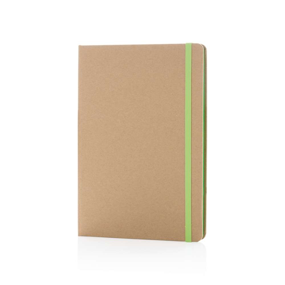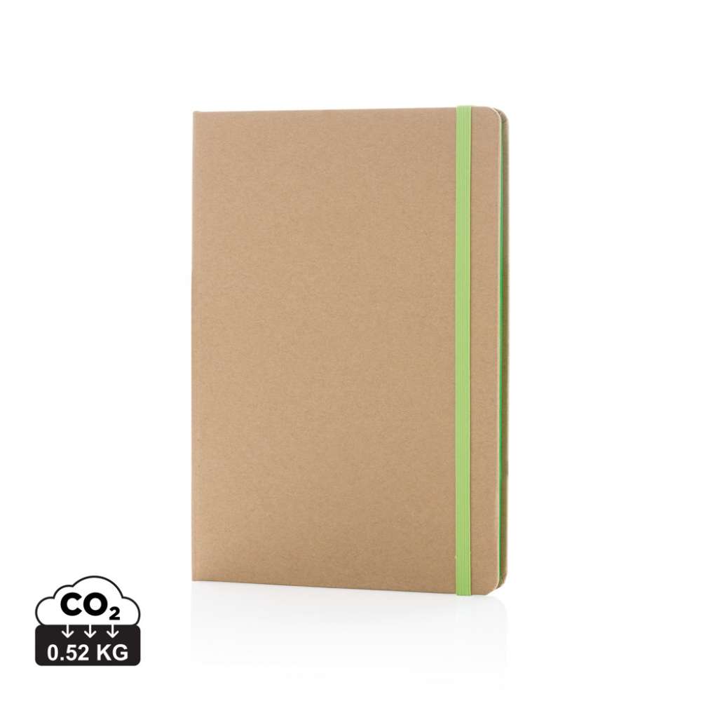 Anteckningsbok med kraft omslag och återvunnet papper. 72 blad/144 sidor 70g/m2. Cremefärgat papper. Elastiskt band och siddelare.