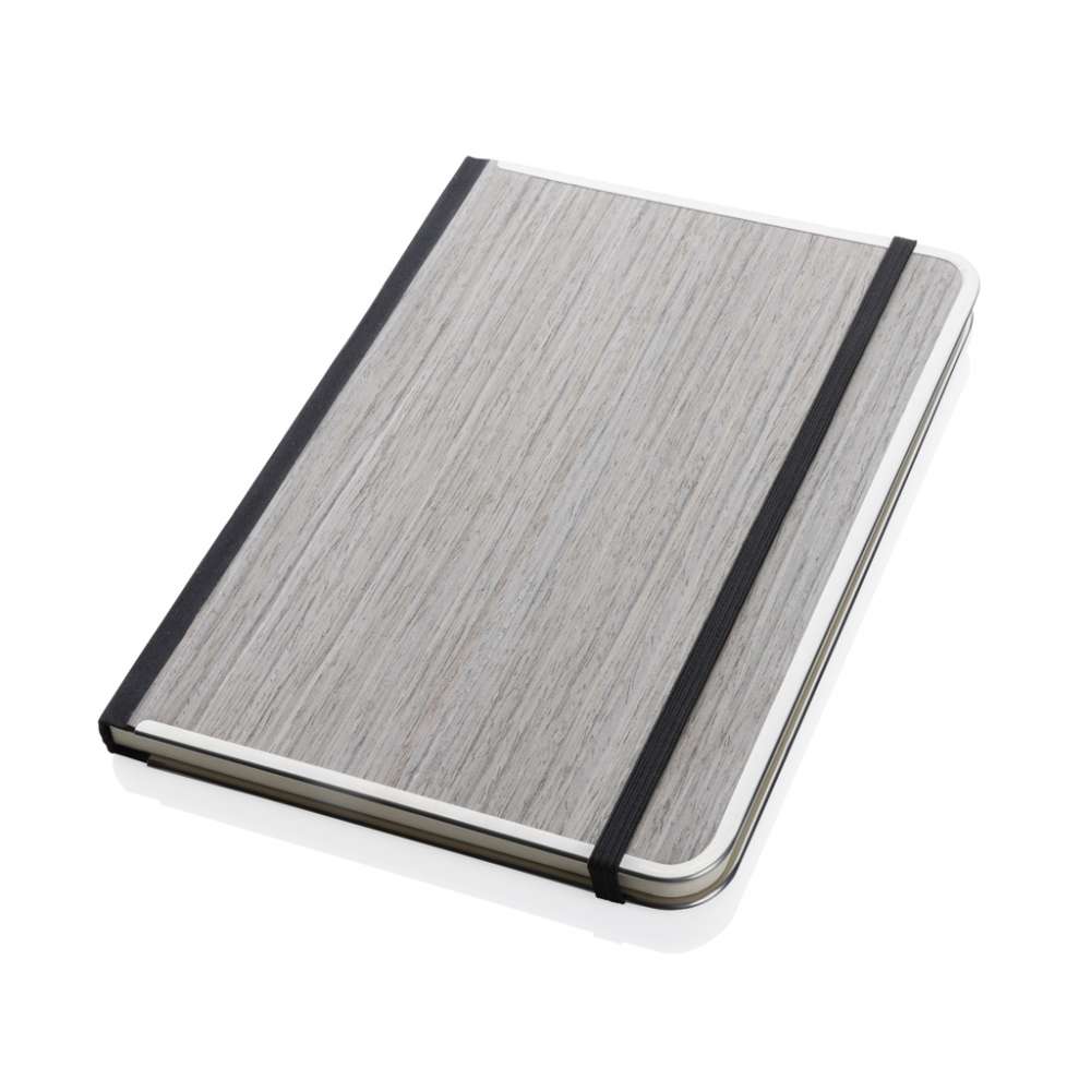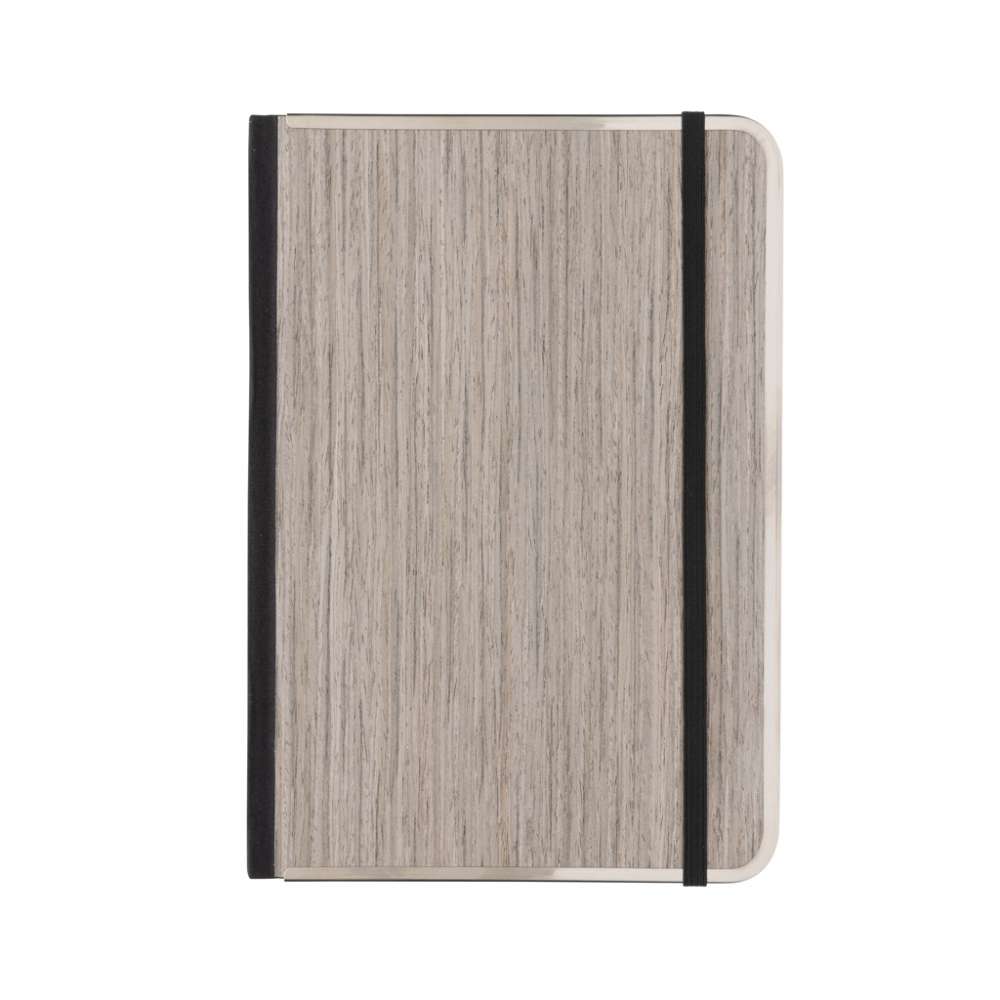 Treeline A5 anteckningsbok har metallbindning, elastiskt band och ett lyxigt FSC®-träomslag. Anteckningsboken har 80 blad (160 sidor) med 80 g/m² linjerat vitt papper. Levereras i FSC® mix kraftomslag.