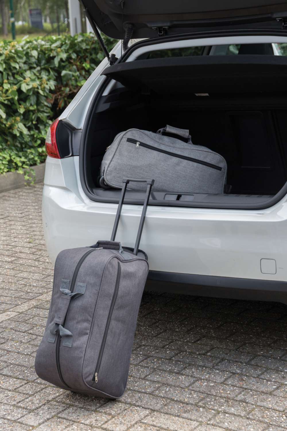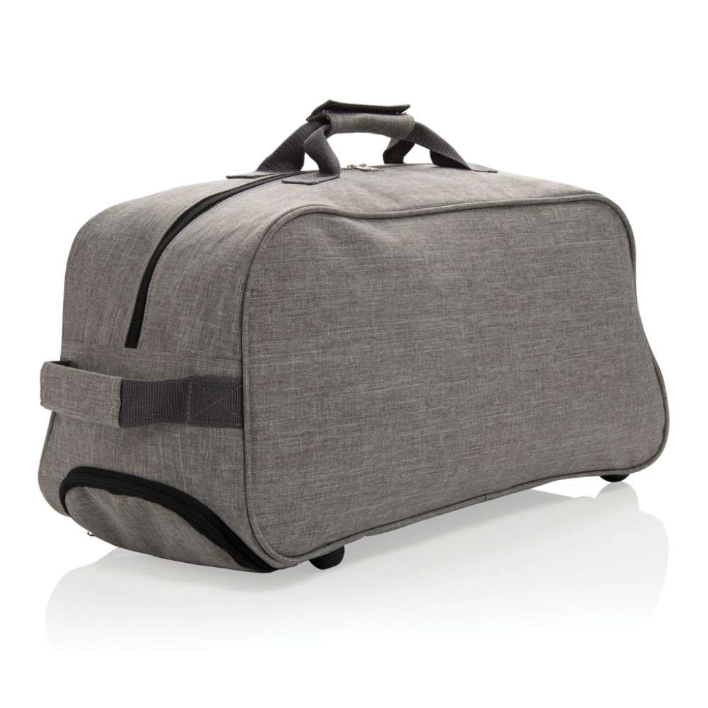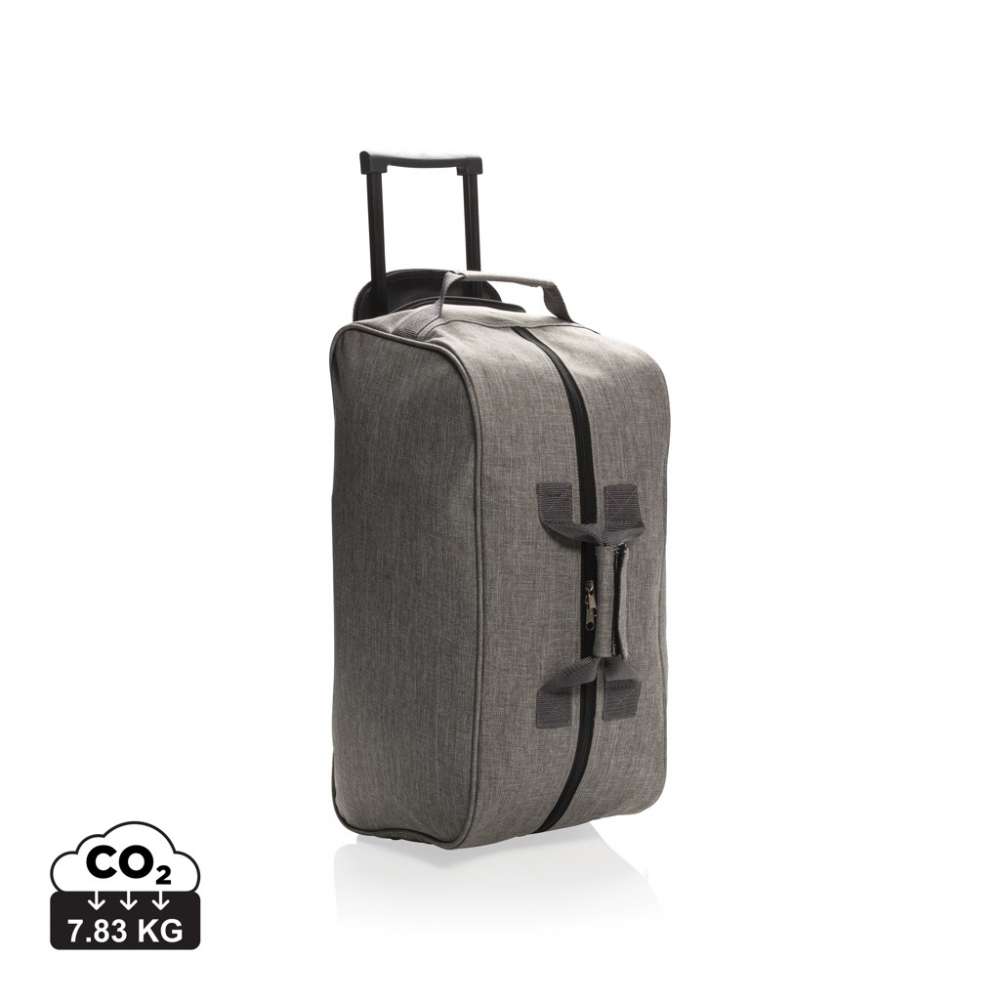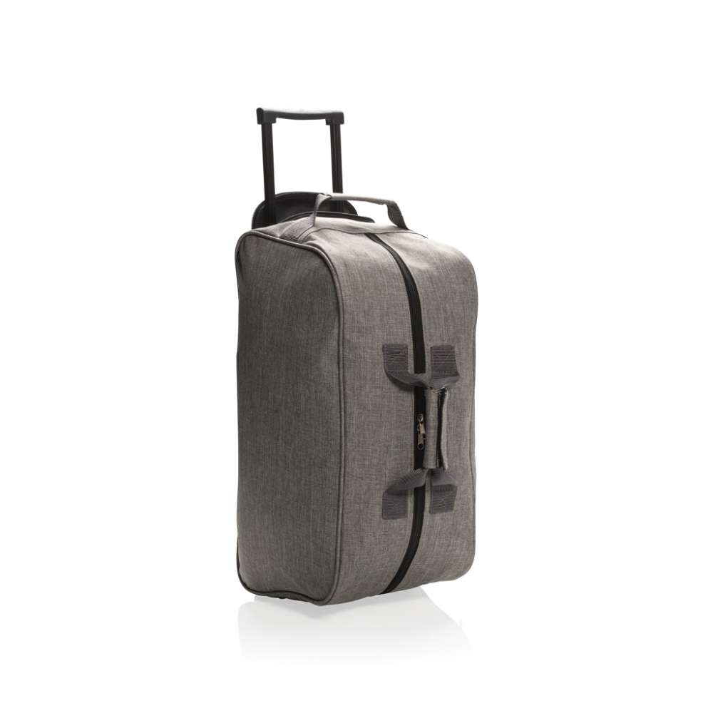600D extra stark polyester med hög densitet i två färgtoner. Utdragbart trolleysystem. Ett frontfack och ett huvudfack med blixtlås.