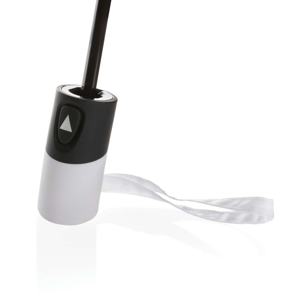 Ingen greenwashing, utan fakta om hållbarhet! Detta 190T RPET pongee Impact paraly är med AWARE™ spårämne. Genom att använda AWARE™ disruptiva fysiska spårämne och blockchain-teknologi kan vi bevisa vårt påstående om att genuint återvunna material använts och att vatten har sparats. Spara vatten och använd genuint återvunna tyger. Med fokus på vatten, 2% av intäkterna för varje såld Impact-produkt kommer att doneras till Water.org. Paraply i tre sektioner, automatisk öppning. Metallram, fiberglasribbor och handtag i ABS. Stormsäkert. Paraplyets paneltyg har återanvänt 7.7 0,5L PET-flaskor. Vattenbesparingen är baserad på en jämförelse med traditionellt material och baserad på LCA data publicerad av Textile Exchange i deras Material Snapshots 2016.