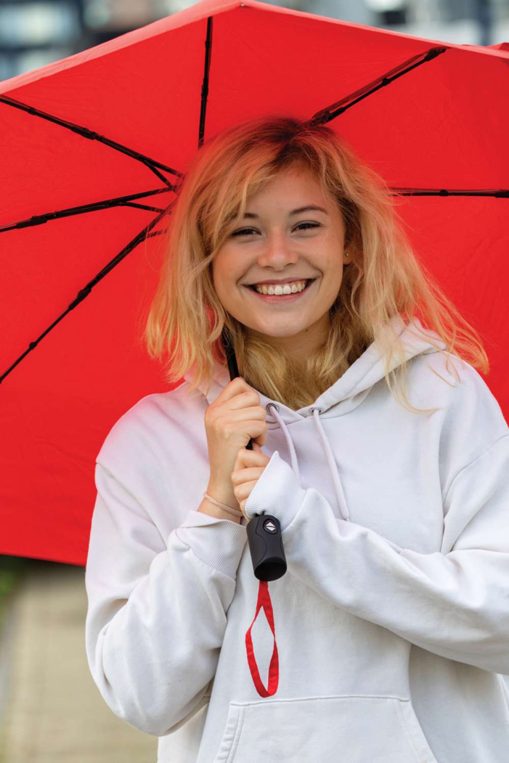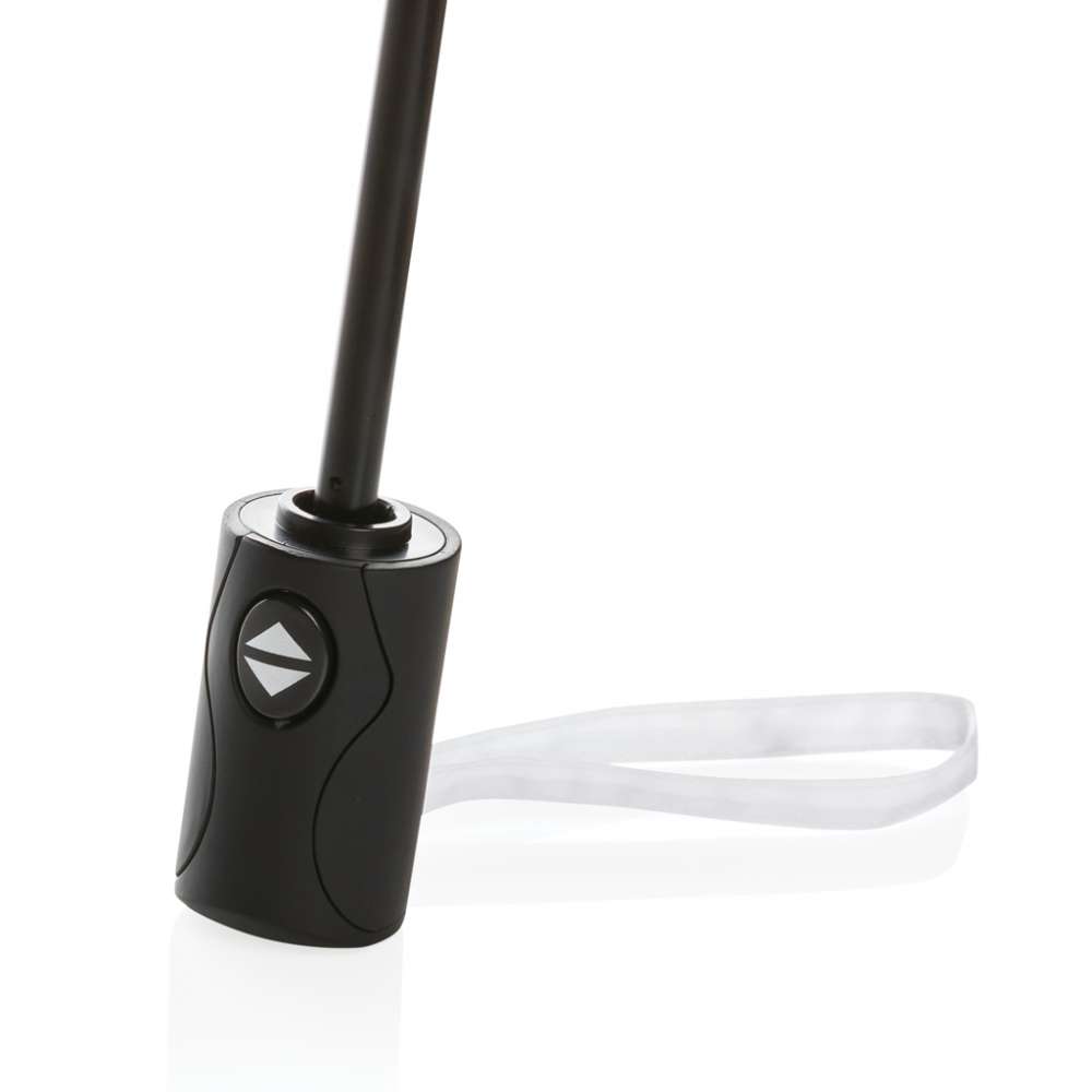Ingen greenwashing, utan fakta om hållbarhet! Detta 190T RPET pongee Impact paraly är med AWARE™ spårämne. Genom att använda AWARE™ disruptiva fysiska spårämne och blockchain-teknologi kan vi bevisa vårt påstående om att genuint återvunna material använts och att vatten har sparats. Spara vatten och använd genuint återvunna tyger. Med fokus på vatten, 2% av intäkterna för varje såld Impact-produkt kommer att doneras till Water.org. Paraply med automatisk öppning och stängning. Metallram, fiberglasribbor och handtag i ABS. Stormsäkert. Paraplyets paneltyg har återanvänt 7.3 0,5L PET-flaskor. Vattenbesparingen är baserad på en jämförelse med traditionellt material och baserad på LCA data publicerad av Textile Exchange i deras Material Snapshots 2016.