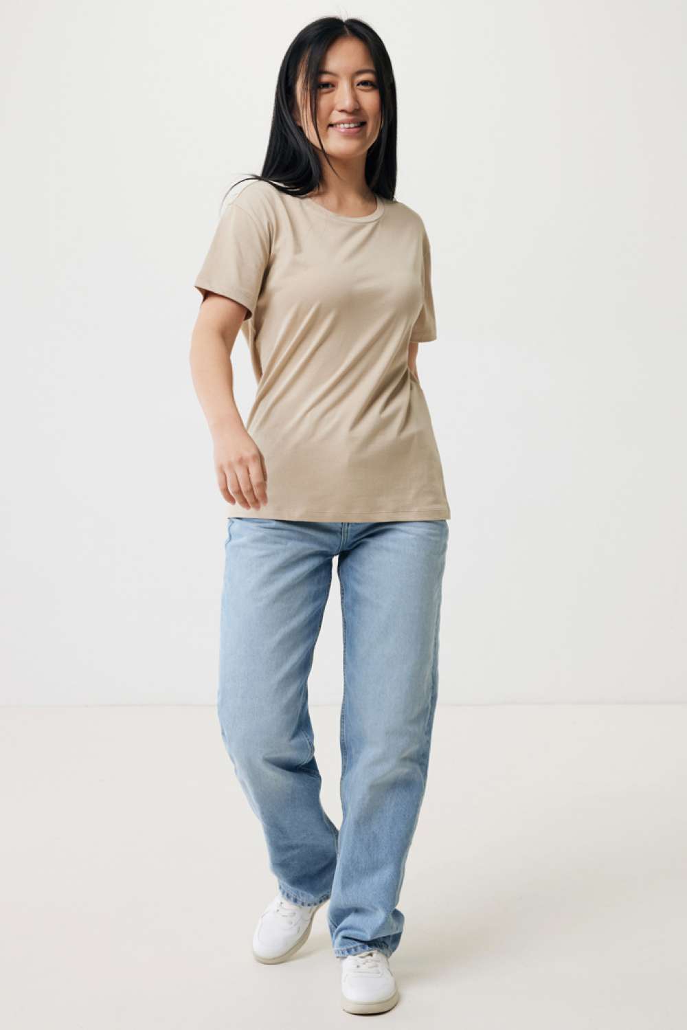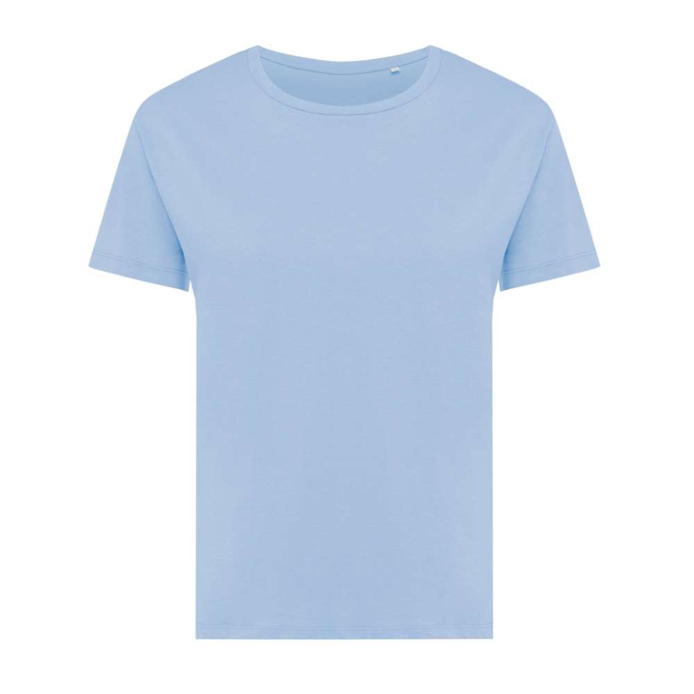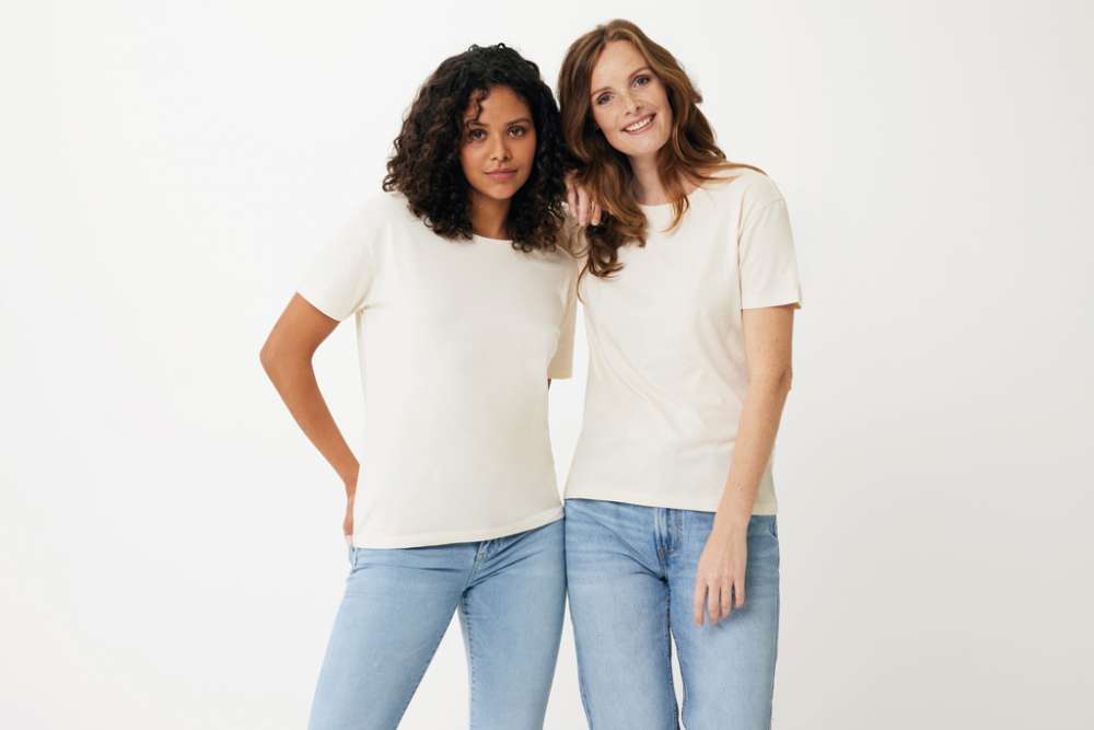 Modern fit t-shirt för dam tillverkad av 100% bomull, varav 70% ekologisk och 30% återvunnen, 160 G/M². T-shirten har en rund halsringning i samma tyg. Användningen av äkta återvunnet och ekologiskt material samt påståenden om miljöpåverkan garanteras med hjälp av AWARE™, en fysisk spårare och blockkedjeteknik. Genom att skanna QR-koden får du tillgång till ett särskilt digitalt produktpass. 2% av intäkterna från varje såld produkt kommer att doneras till Water.org. Denna produkt är certifierad enligt OEKO-TEX® STANDARD 100 Centexbel. På grund av återvunna garner kan orenheter och färgvariationer förekomma.