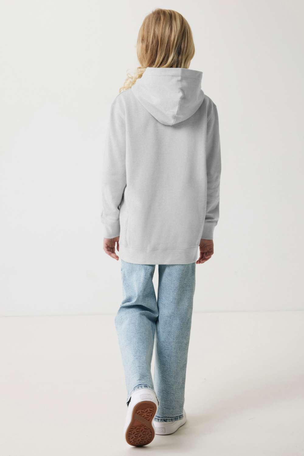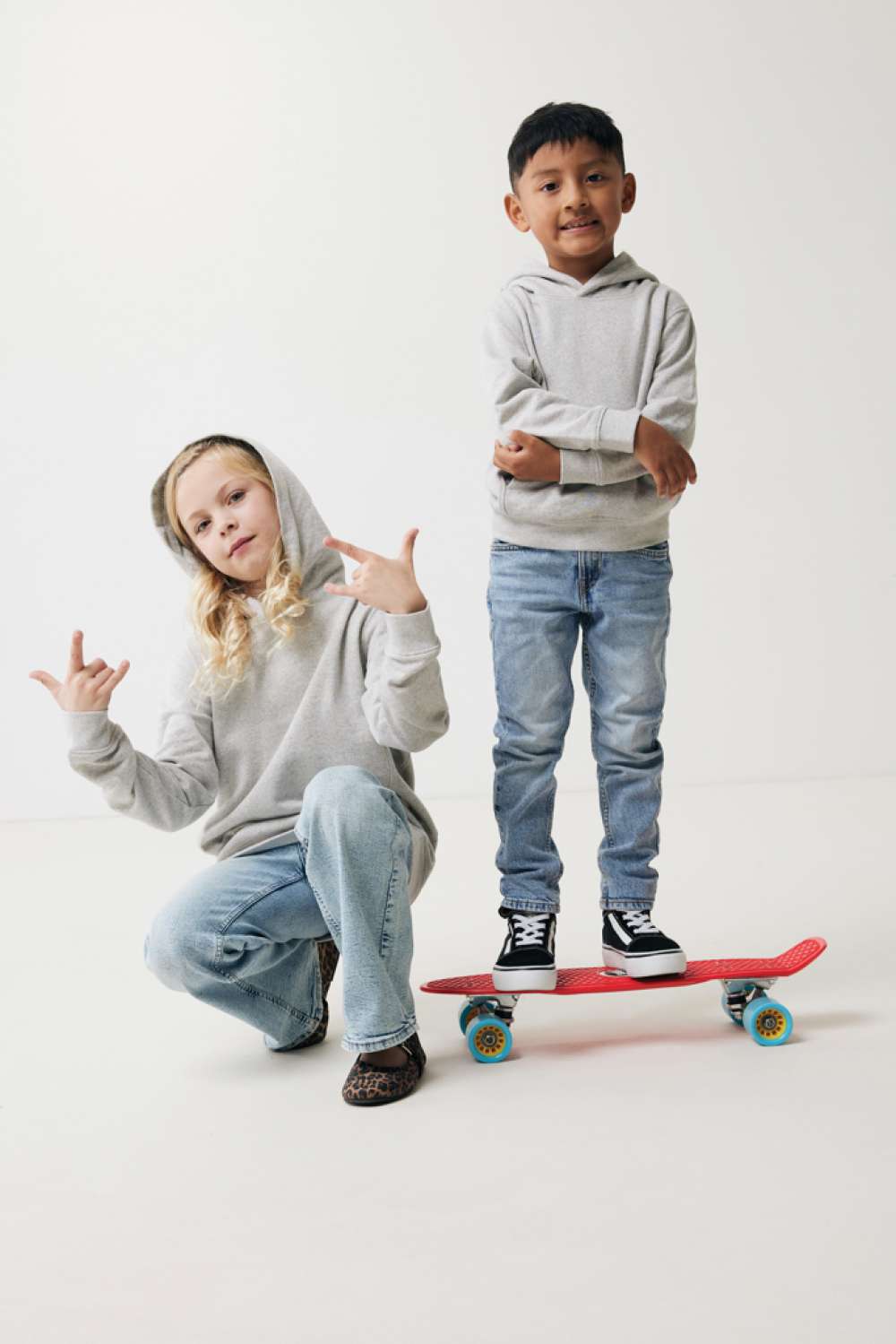 Modern fit hoodie för barn tillverkad av 100% bomull, varav 70% ekologisk och 30% återvunnen, 280 G/M². Tröjan har fickor i sidosömmarna, en huva med dubbla lager och 1×1 ribb i ärmslut och nederkant. Insidan är i mjuk borstad fleece för extra komfort. Användningen av äkta återvunna och ekologiska tygmaterial och påståenden om miljöpåverkan garanteras genom att använda AWARE™ disruptiv fysisk spårning och blockchain-teknik. Genom att skanna QR-koden får du tillgång till ett särskilt digitalt pass för produkten. 2% av intäkterna för varje såld produkt kommer att doneras till Water.org. Denna produkt är certifierad enligt OEKO-TEX® STANDARD 100 Centexbel. På grund av återvunna garns natur kan orenheter och färgvariationer förekomma.