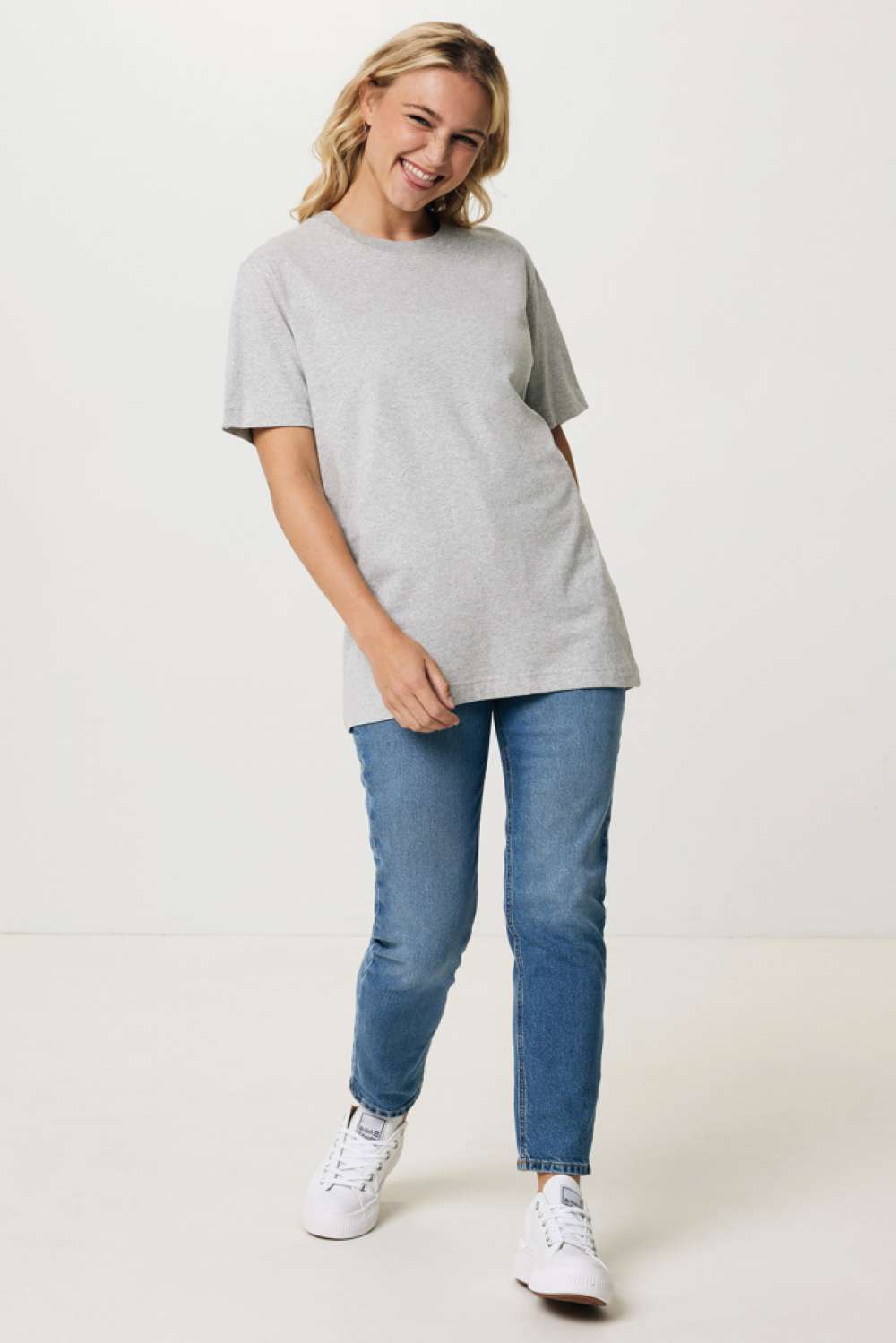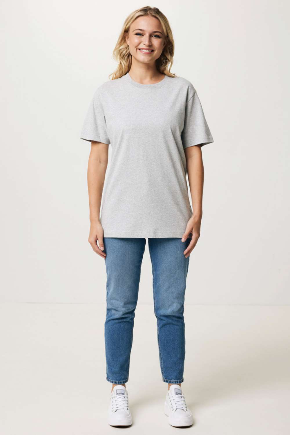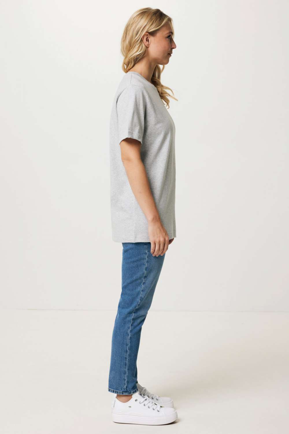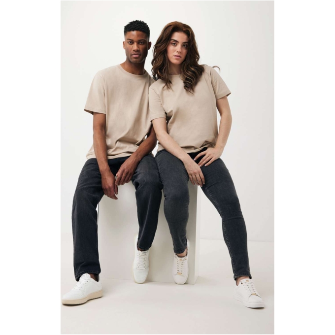 Unisex t-shirt relaxed fit tillverkad av 100% bomull, varav 50% återvunnen och 50% ekologisk, 180 G/M². T-shirten har en rund halsringning med 1×1 ribb. Användningen av äkta återvunnet och ekologiskt material samt påståenden om miljöpåverkan garanteras med hjälp av AWARE™, en fysisk spårare och blockkedjeteknik. Genom att skanna QR-koden får du tillgång till ett särskilt digitalt produktpass. 2% av intäkterna från varje såld produkt kommer att doneras till Water.org. Denna produkt är certifierad enligt OEKO-TEX® STANDARD 100 Centexbel. På grund av återvunna garner kan orenheter och färgvariationer förekomma.