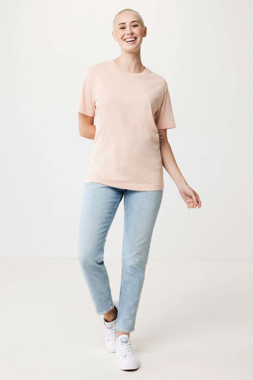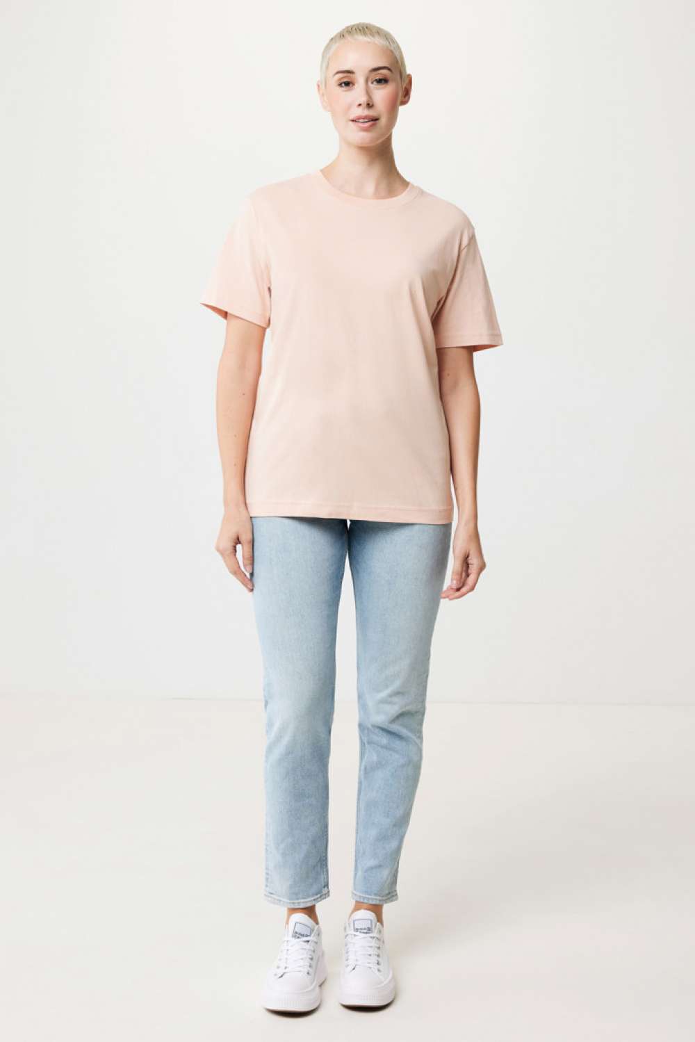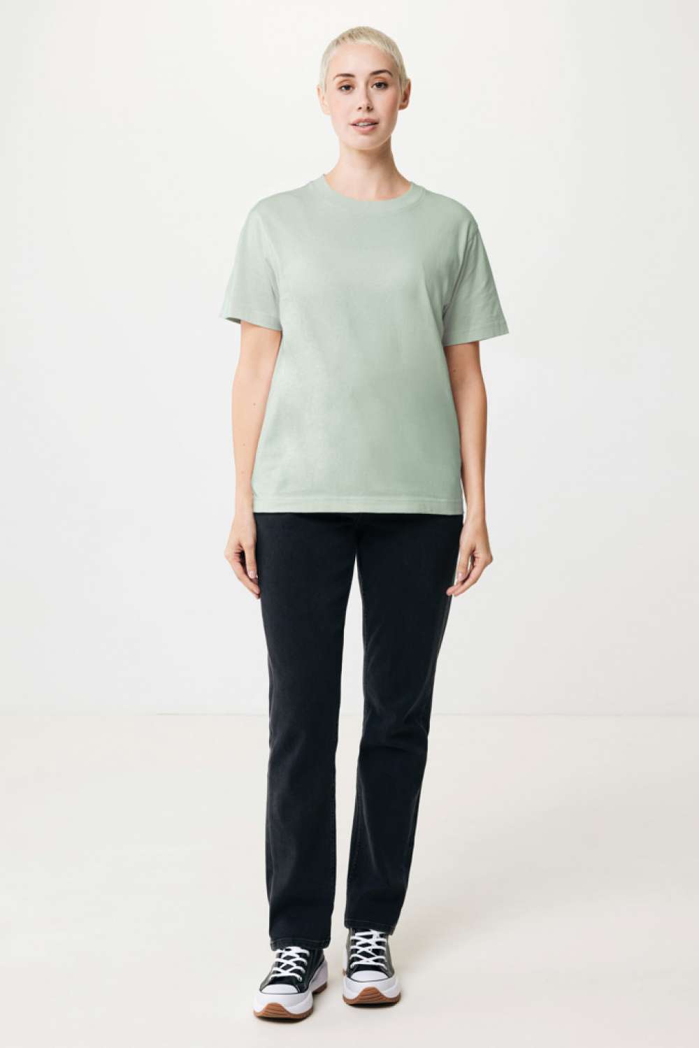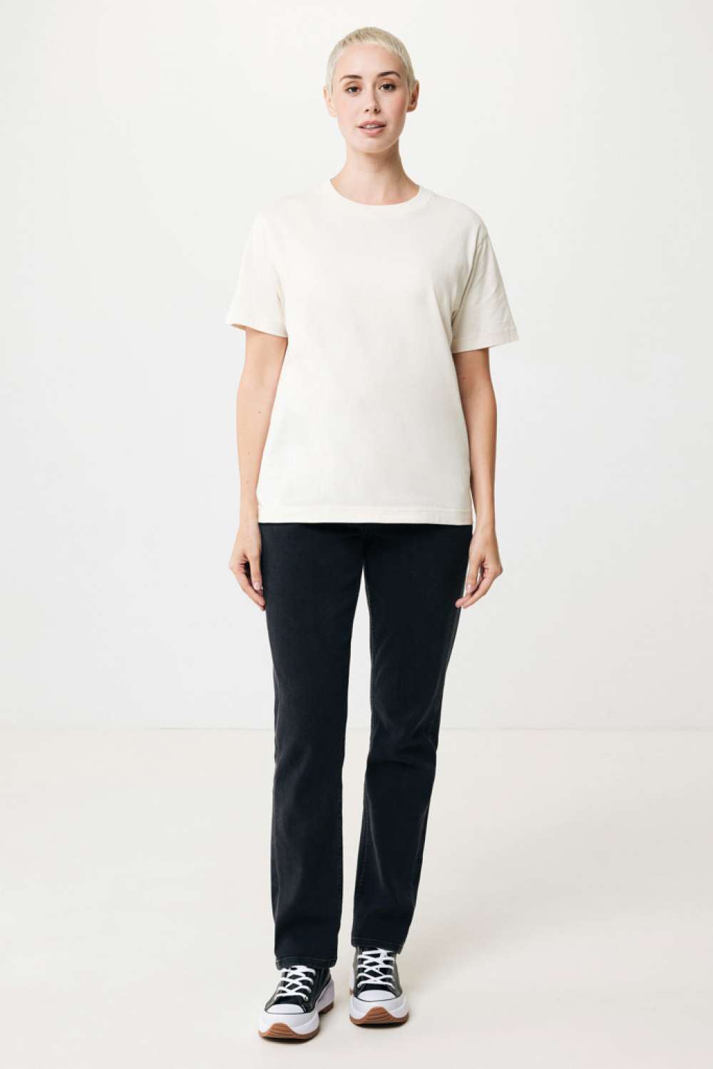 Unisex t-shirt relaxed fit tillverkad av 100% bomull, varav 50% återvunnen och 50% ekologisk, 180 G/M². T-shirten har en rund halsringning med 1×1 ribb. Användningen av äkta återvunnet och ekologiskt material samt påståenden om miljöpåverkan garanteras med hjälp av AWARE™, en fysisk spårare och blockkedjeteknik. Genom att skanna QR-koden får du tillgång till ett särskilt digitalt produktpass. 2% av intäkterna från varje såld produkt kommer att doneras till Water.org. Denna produkt är certifierad enligt OEKO-TEX® STANDARD 100 Centexbel. På grund av återvunna garner kan orenheter och färgvariationer förekomma.