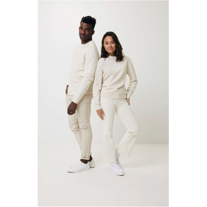 Unisex sweatshirt med normal passform tillverkad av 100% bomull, 50% återvunnen och 50% ekologisk, i 340 G/M². Det är samma sweatshirt med rundad hals som vår IQONIQ ‘Zion’. En enda skillnad: vi eliminerar färgningsprocessen. Vi har blandar återvunnen bomull i sin befintliga färg med jungfrulig ekologisk bomull, som skapar den vackra heather mélange-effekten. Användningen av äkta återvunnet och ekologiskt material och påståenden om miljöpåverkan garanteras, genom att använda AWARE™ disruptiva fysiska spårare och blockkedjeteknik. Genom att skanna QR-koden får du tillgång till ett digitalt produktpass. 2% av intäkterna från varje såld produkt kommer att doneras till Water.org. Produkten är OEKO-TEX® STANDARD 100 Centexbel certifierad. På grund av återvunnet garns egenskaper kan orenheter och färgvariationer förekomma.