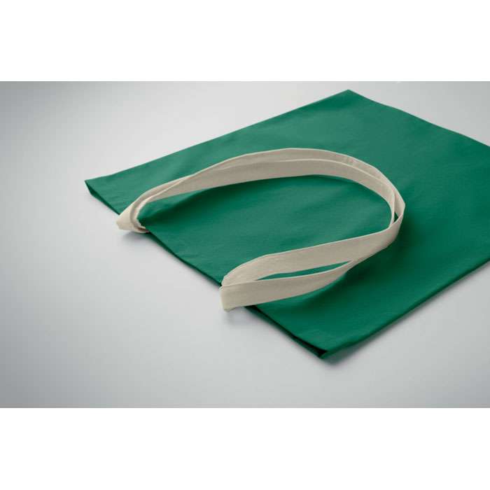 Kasse i bomull med långa handtag. 140 gr/m².