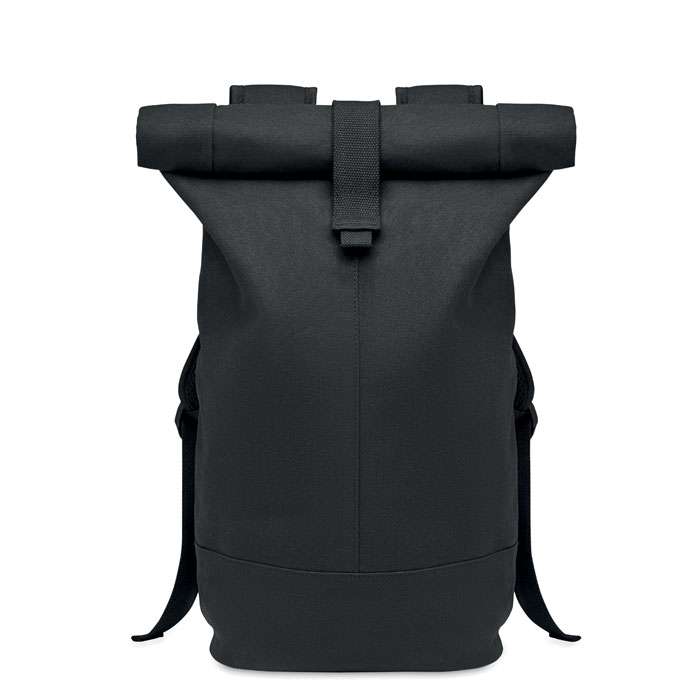 Ryggsäck i högkvalitativ 340 gr/m² tvättad canvas med vadderad ryggförstärkning. Stängs genom att rulla topen. Foder i RPET 210D.