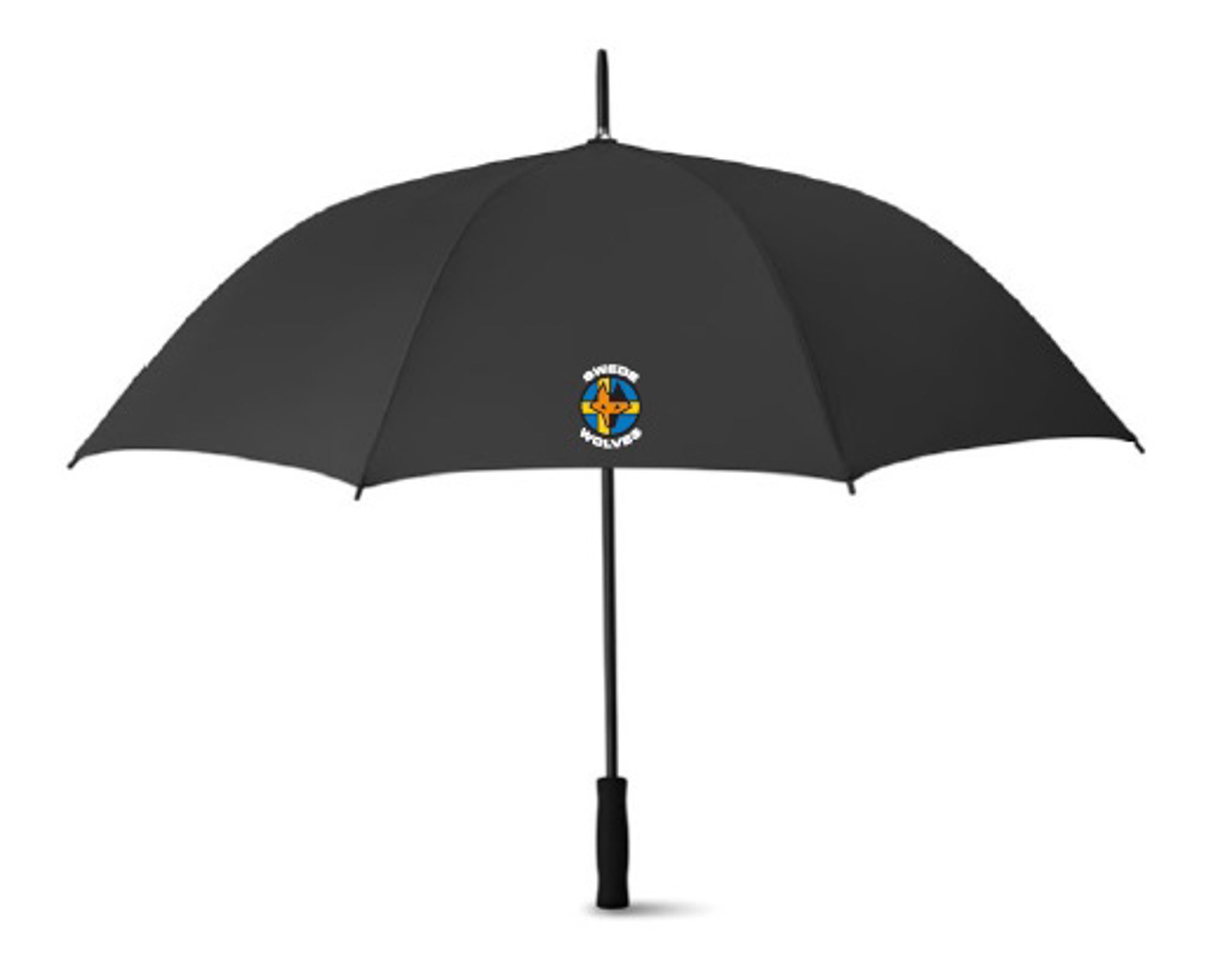 27” Paraply med automatisk öppning och manuell stängning. Svart metallskaft med EVA handtag och metallribbor med svarta plastspetsar. Hätta i 190T polyester.